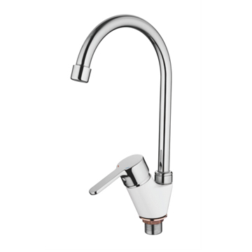 Смеситель кухня боковая ручка на гайке (35) Силумин Белый Accoona A4467G