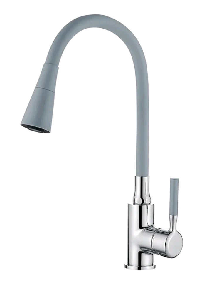 Смеситель кухня силиконовый излив двухрежимный (35) Латунь Серый+Хром Accoona A9890T-1 (АС4) (АС7`)