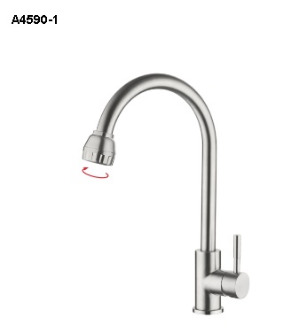 Смеситель кухня боковая ручка на гайке (35) двухрежимный Нержавеющая сталь Accoona A4590-1 (АС2)