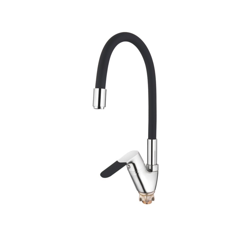 Смеситель кухня силиконовый излив (35) Латунь Черный+Хром Accoona A4819F (АС4)