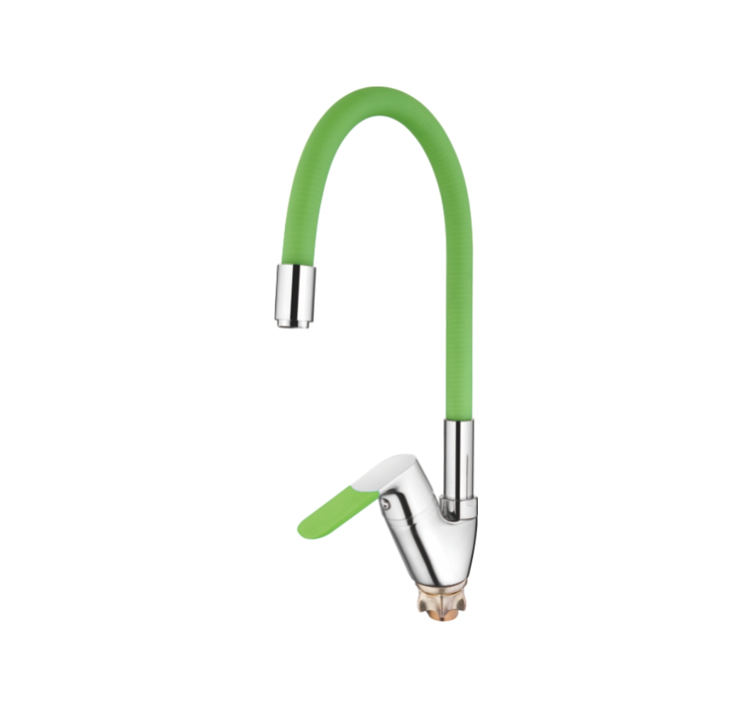 Смеситель кухня силиконовый излив (35) Латунь Зеленый+Хром Accoona A4819K