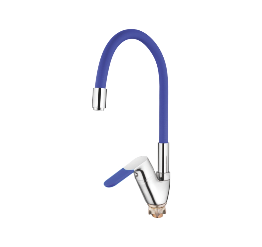 Смеситель кухня силиконовый излив (35) Латунь Синий+Хром Accoona A4819M