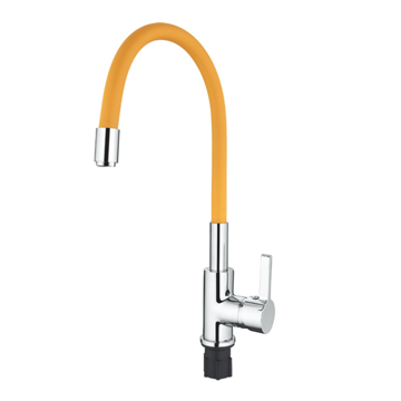 Латунный смеситель для кухни с желтым изливом Accoona A9890H станет украшением на кухне и будет радовать хозяйку своей практичностью и внешним видом.Смеситель с желтым гибким изливом это очень удобное решение, особенно для небольшой квартиры где нет возможности поставить посудомоечную машину и все кастрюли, сковородки и иную большую посуду приходиться мыть руками.