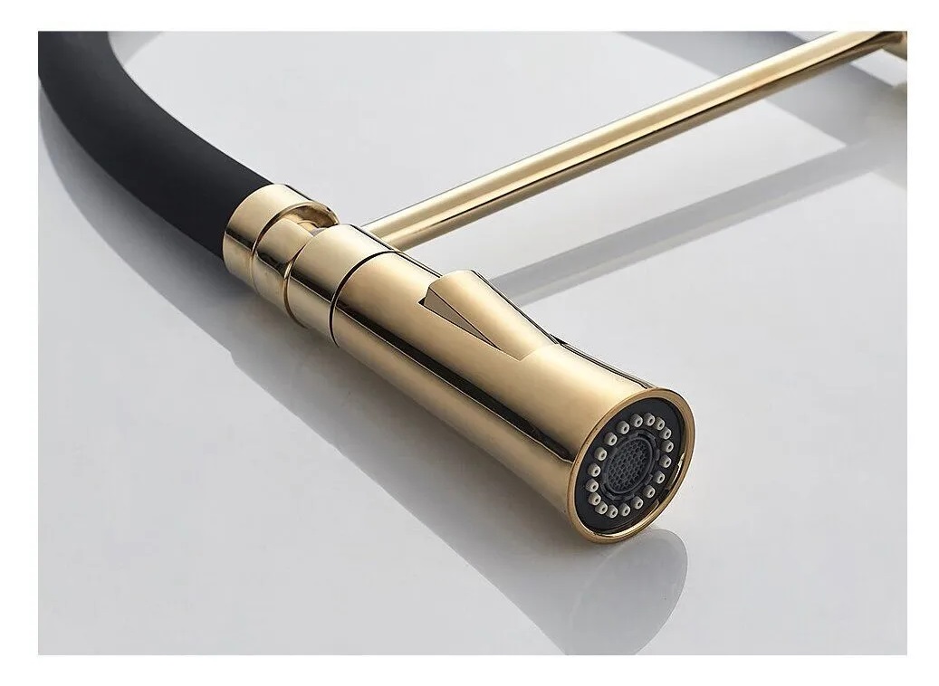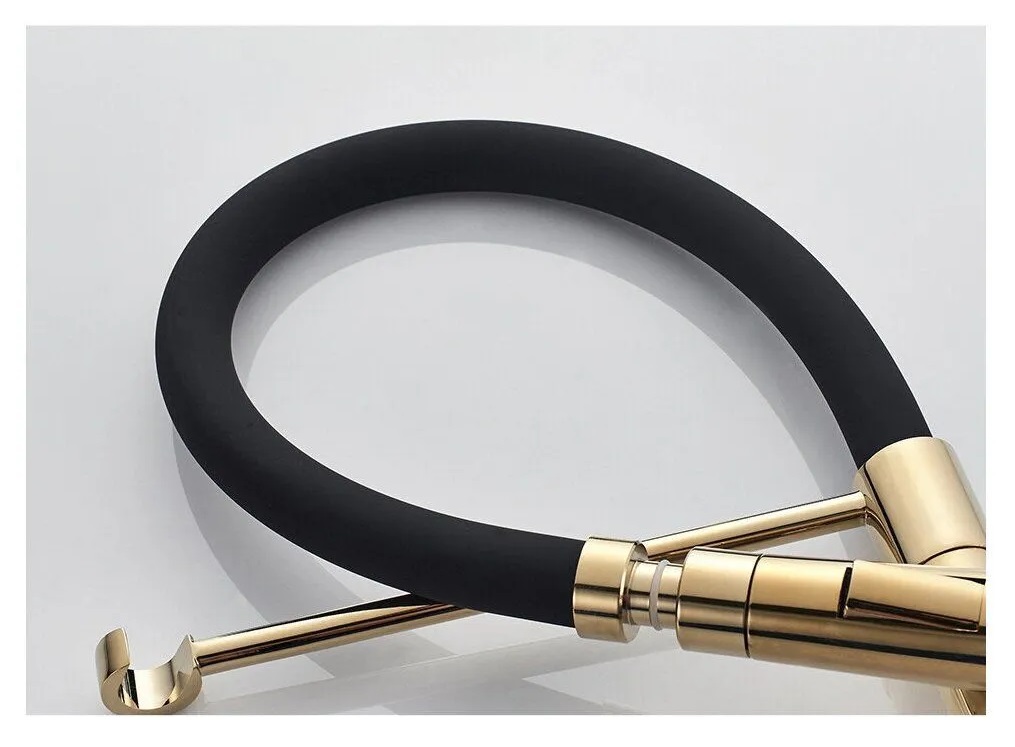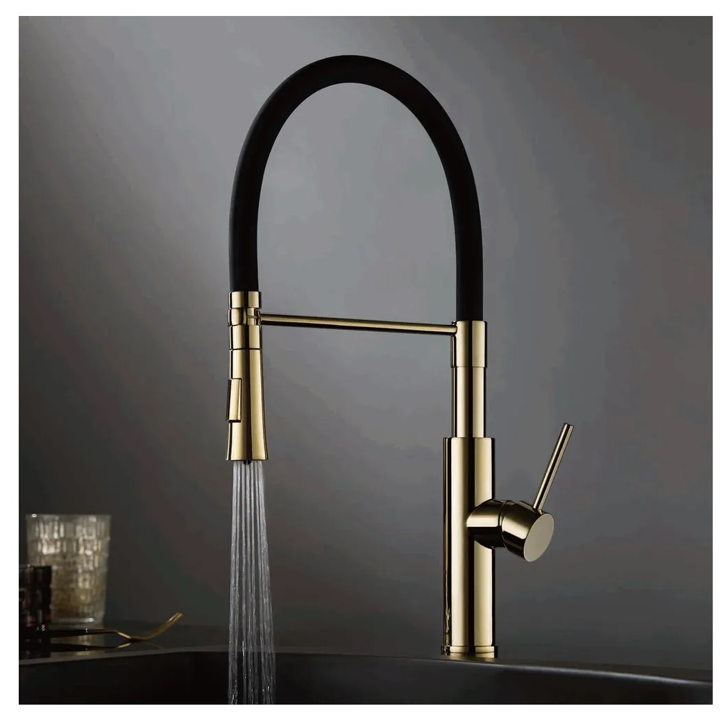 Смеситель для кухни высокий золотой черный с гибким изливом Accoona A4890WF-1