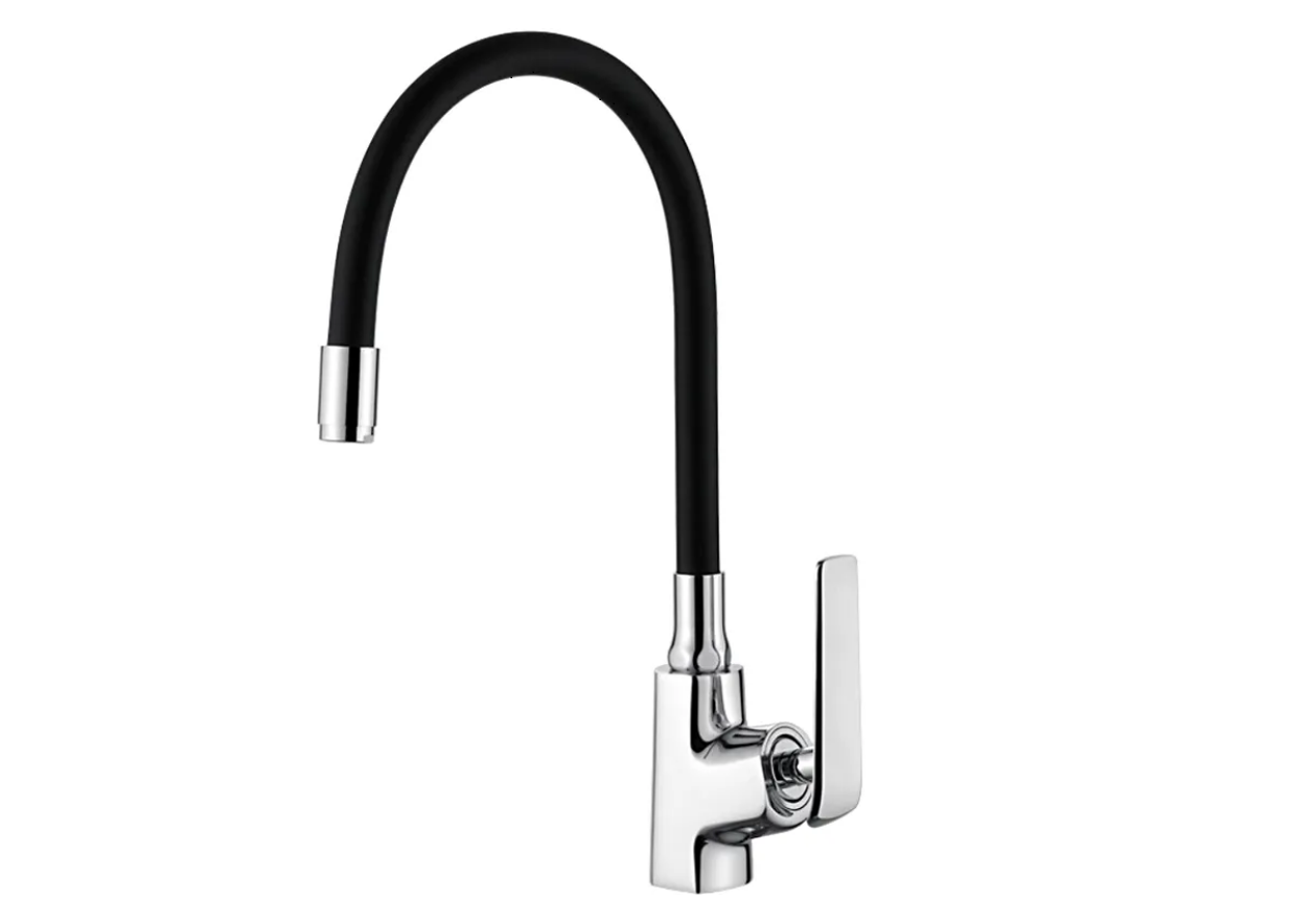 Смеситель кухня силиконовый излив (35) Латунь Черный+Хром Accoona A48123
