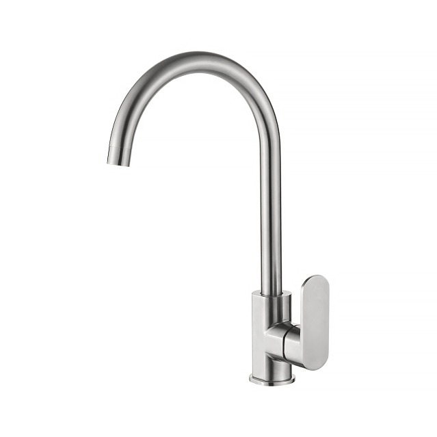 Смеситель для кухни Accoona оснащён высоким изливом и одним рычагом.Изделие позволяет набирать воду в большие ёмкости, мыть крупную посуду, а также и саму мойку.