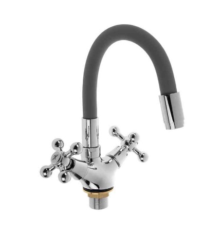 Смеситель раковина крест силиконовый излив Серый+Хром Accoona A9871T (АС6) (АС8`)