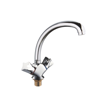 Смеситель кухня на гайке барашки толстый гусак Латунь Accoona A4073 (АС6)