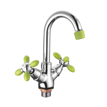 Смеситель раковина на гайке крест поворотный излив Силумин Зеленый+Хром Accoona A9482K