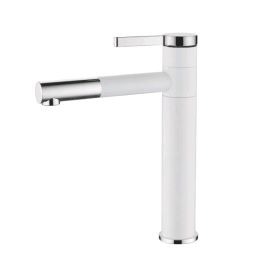 Смеситель раковина высокий на гайке (35) Латунь Белый+Хром Accoona A9290G-6