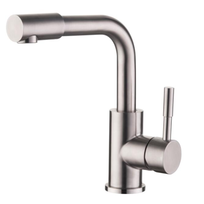 Однозахватный смеситель для раковины с гайкой. Выполнен из нержавеющей стали. Смеситель, обязательный утилитарный элемент ванной и кухни, выполняя эстетическую функцию, является также важнейшей частью «активного» декора этих помещений.Характеристики