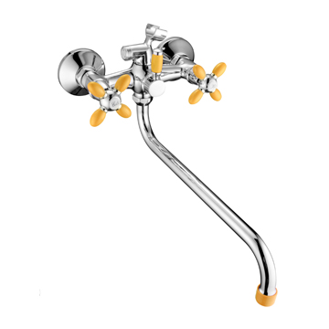 Смеситель ванна 30 см крест Силумин Желтый+Хром Accoona A7182H (АС5) (АС8`)