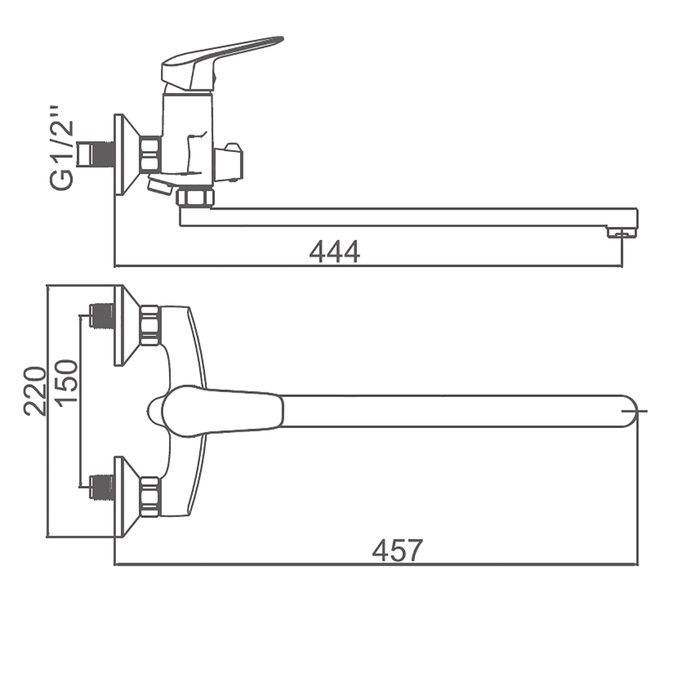 Смеситель ванна прямой нос 30 см (35), дивертор в корпусе. Латунь, Accoona A7118Цвет Хромированный