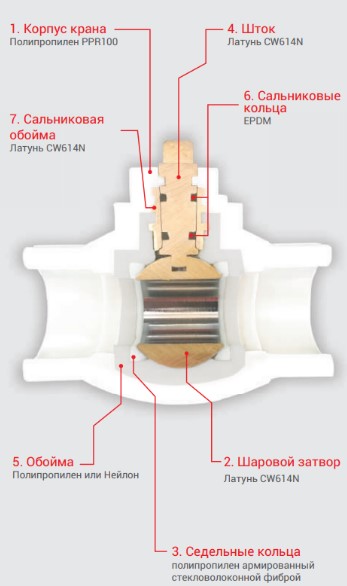 •Полнопроходной шаровой затвор — снижает потери напора, эффективен при любом положении рукоятки
