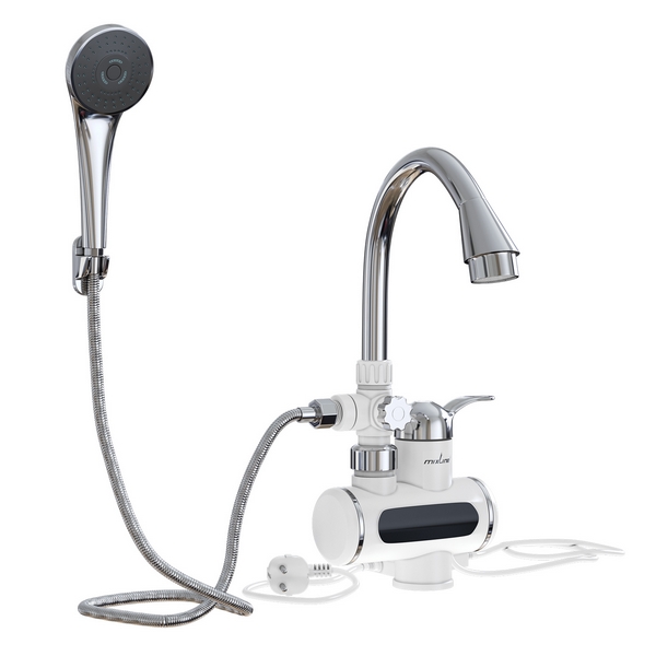 Смеситель-водонагреватель проточный WH-004 (3,3 кВт, УЗО, умыв с лейкой, индикатор темп) Mixline