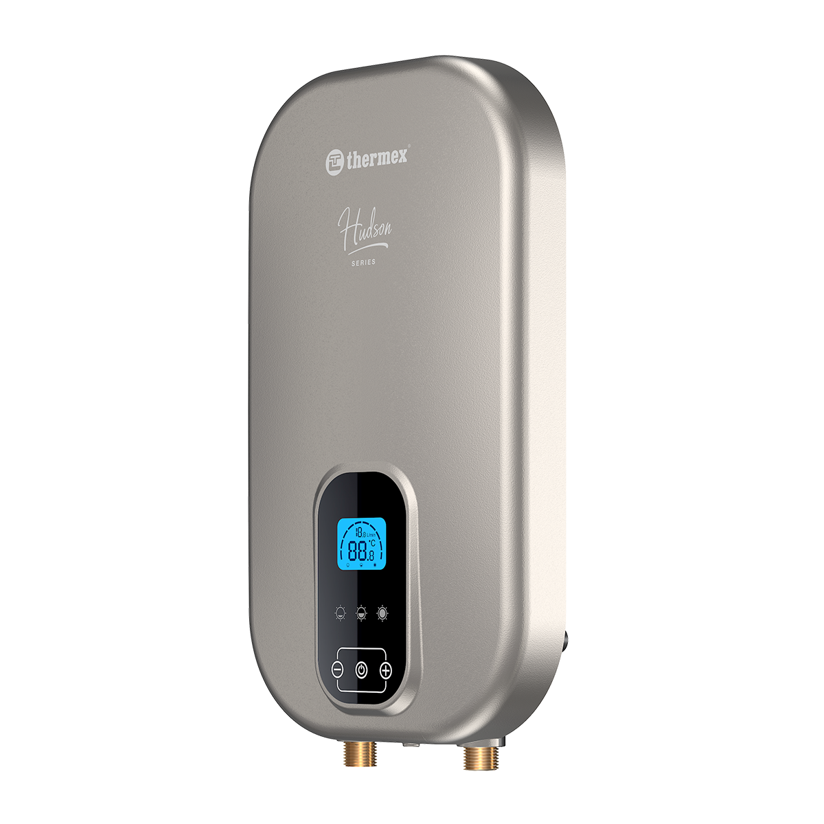 Электроводонагреватель Thermex Hudson 8500 — мощный проточный нагреватель для горячего водоснабженияПрибор компактный, работает от сети 230 В и обеспечивает быстрый нагрев воды “по требованию”, без накопительного бака. Оснащён электронным управлением, дисплеем и системой защиты от перегрева.