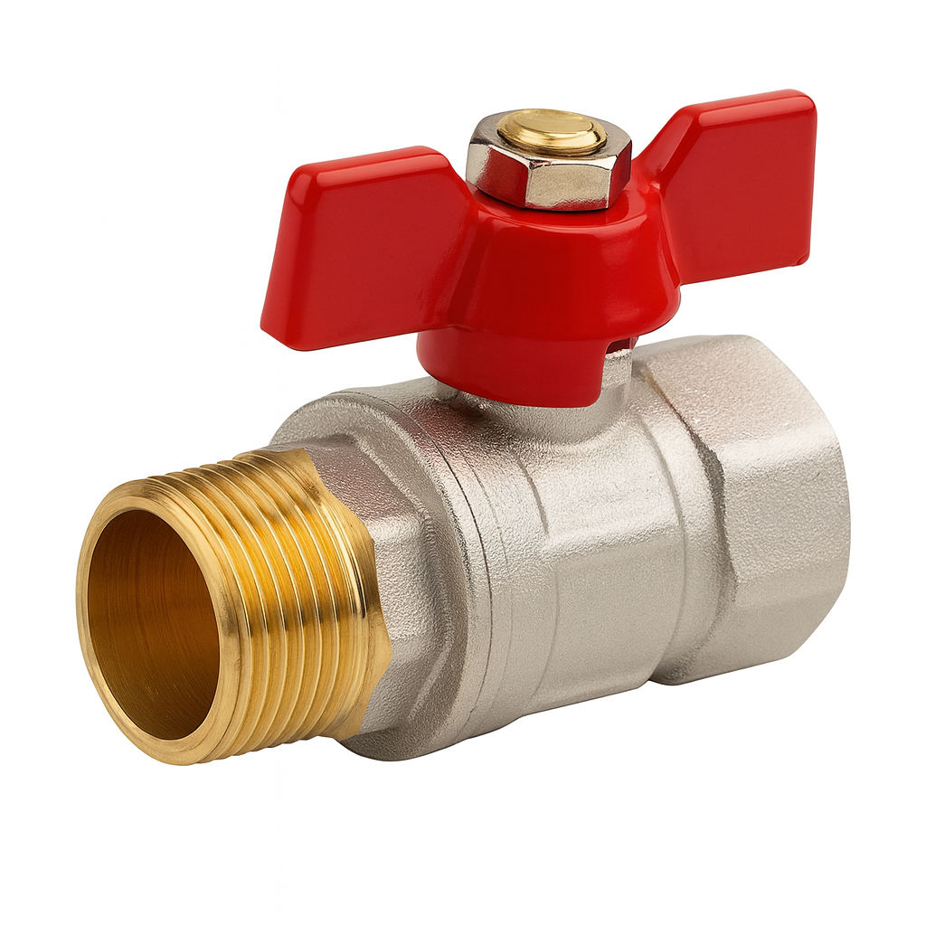 Кран шаровой 1 гш «STANDARD» (бабочка красная) НИКЕЛЬ